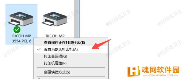 3、如果没有,需要右键选择一台可用打印机,点击“设置为默认打印机”。