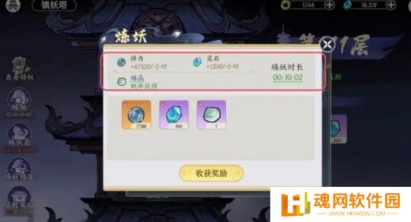 6、爬镇妖塔:建议推到当天的上限,就能获得大量炼药奖励,其中包括人物经验。